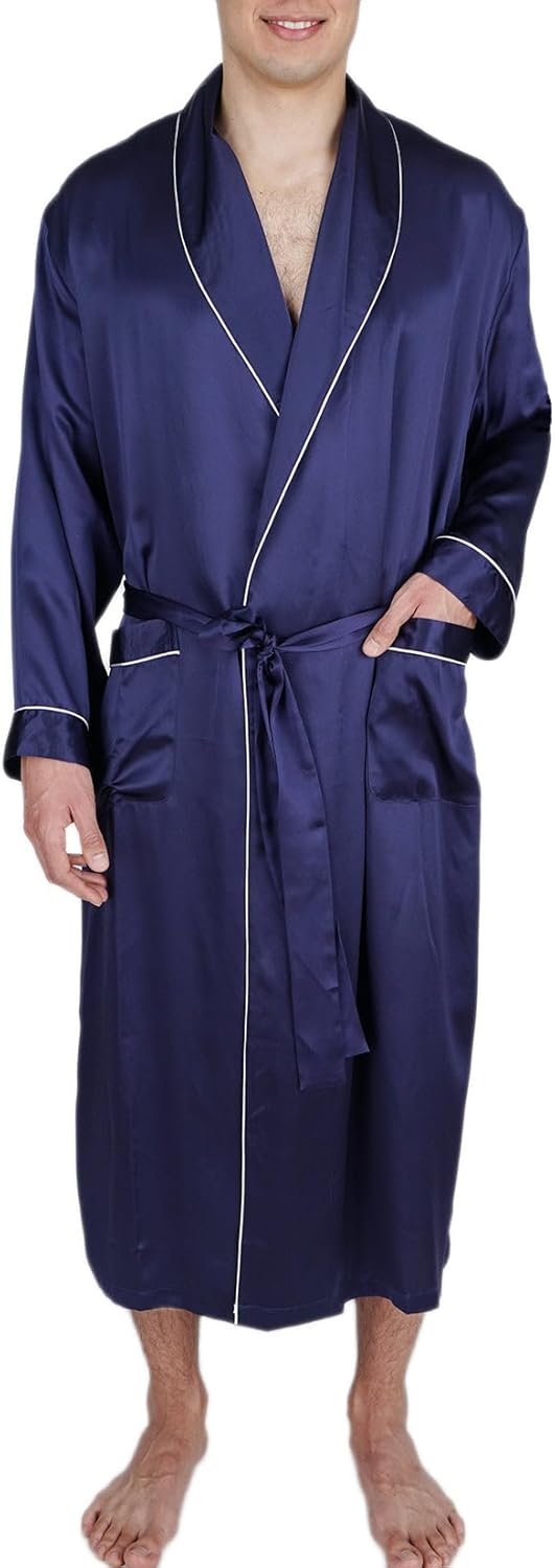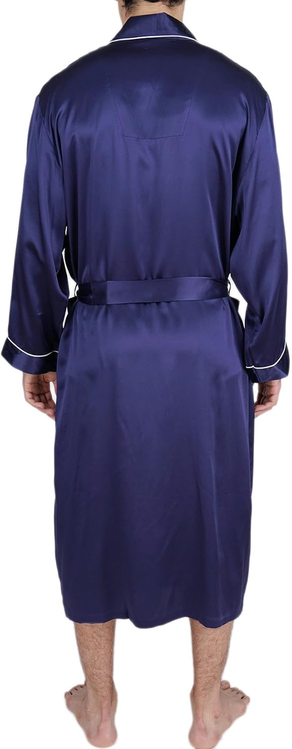 - Kimono collar, loop on the back neck for easy hanging, 2 front pockets and long sleeves. Inside ties closure and matching belt for easy adjust to your fit, nice french seam finish.